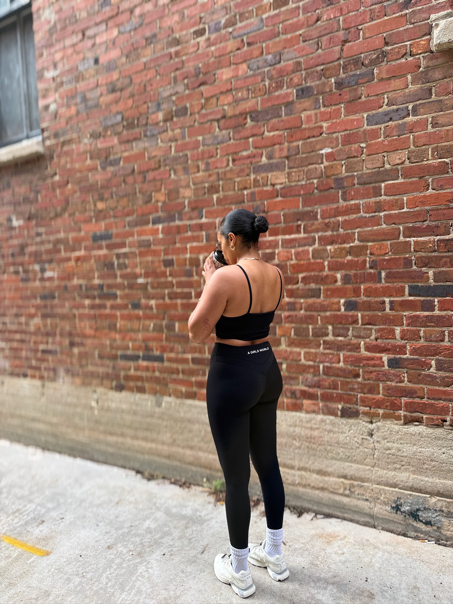 These leggings bring sleek energy to every move! The high rise waistband smooths and supports, with a sculpting fit. The V pattern on the back, accentuates your curves in the perfect way. Taking you from the streets to the gym with ease.